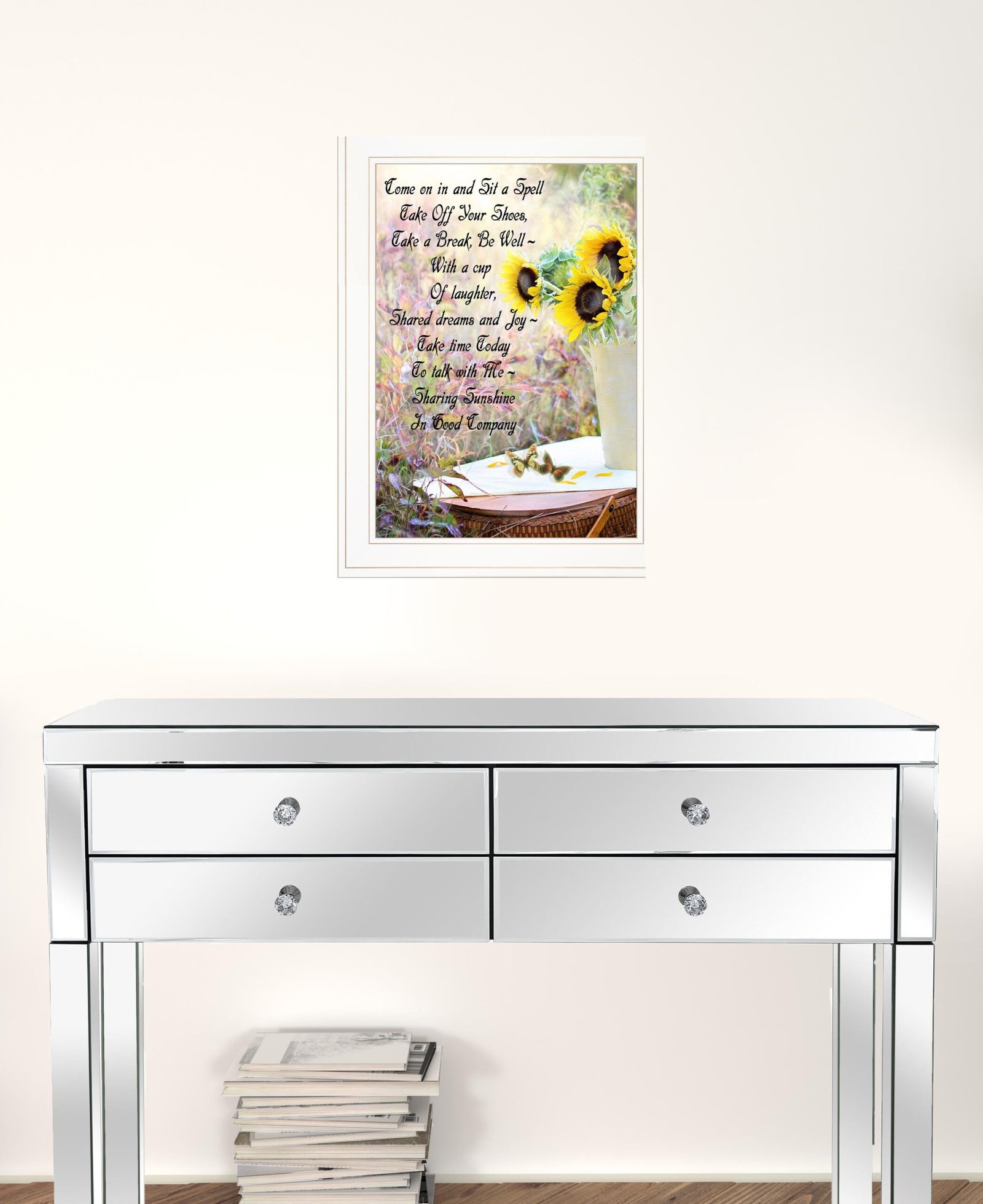 This sharing sunshine 2 white framed print wall art will add a beautiful decorative accent to your decor. This print is a visual artistic expression that allows you to decorate your space in style. Reproduced for you on paper, this hanging decorative accent will be a trendy and fashionable way to dress your walls. Hang on your wall to add some up to date fashion and decoration. Utilize this opportunity to create a focal point in the room with this fabulous wall decor option. 22-inch H x 16-inch W x 1-inch D