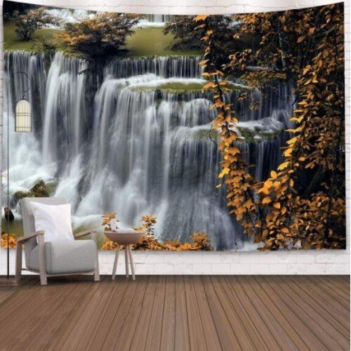 Be the first to review “Yellow Leaves and Waterfall Design Nordic Fashion Background Cloth Home Wall Decorational Tapestry”